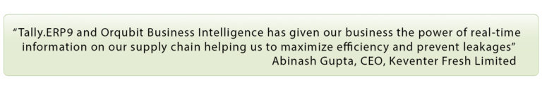 Mr.Abinash Gupta, CEO at KFL, claims “the implementation of Tally.ERP9 and Orqubit Business Intelligence has helped us to avail real-time information and make informed business decisions.”