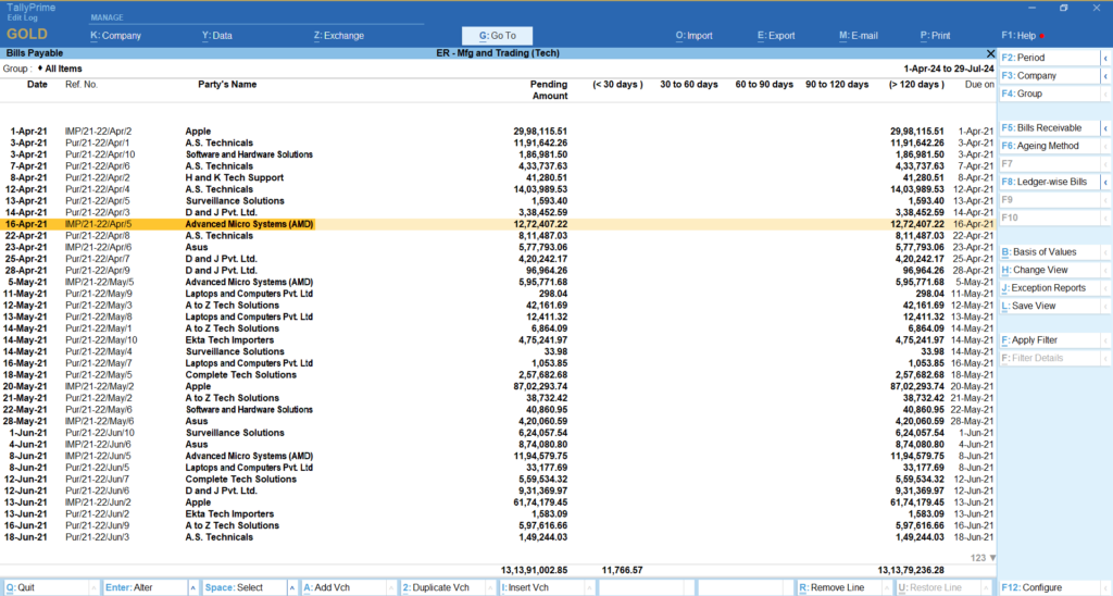 The Bills Payables report helps track all outstanding payments to your suppliers. It includes invoice details, due dates, and total amounts payable.