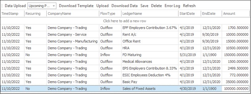 - Configure upcoming/recurring receipts (e.g. FD maturity, asset sales)