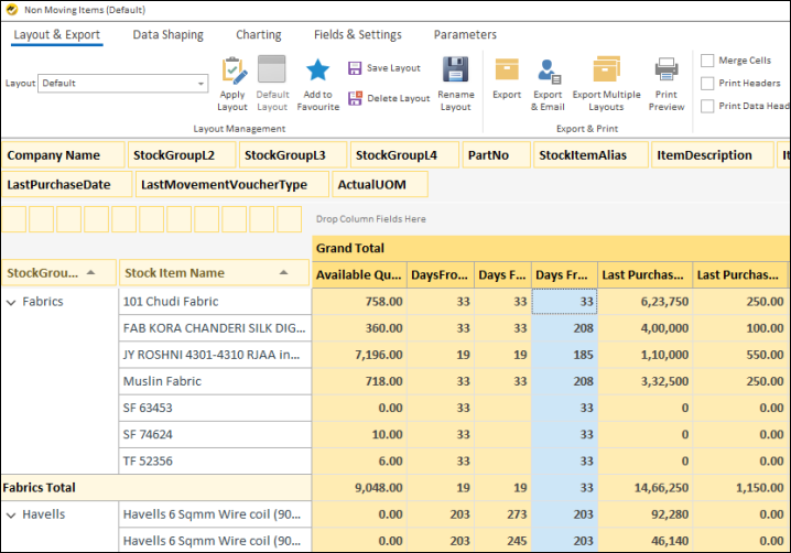 - Filter by ageing bracket (e.g., items in stock for over 360 days)