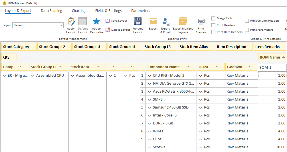 - Get BOM breakup for finished and semi-finished goods