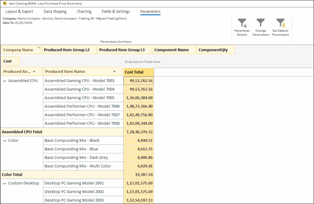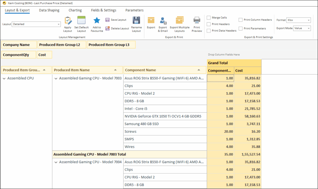Item Costing (BOM) – Last Purchase Price (Detailed)