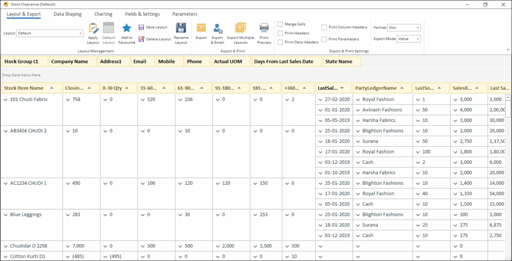 - Salesperson can use this report with cross selling report to identify items to pitch to customers